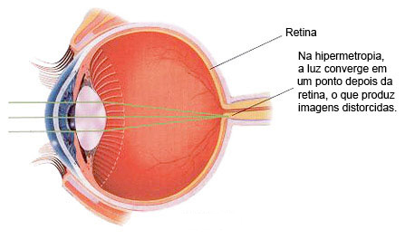 Diferentemente do que o nome indica, pessoas hipermétropes têm uma visão embaraçada a qualquer distância, a menos que façam um esforço constante para manter o foco, o que pode causar tensão, dores de cabeça e fadiga ocular. Na verdade, bebês e crianças normalmente têm um pequeno grau de hipermetropia. À medida que seus olhos crescem e se alongam, a condição se corrige de forma natural, normalmente até os sete ou oito anos. Alguns adultos e jovens permanecem hipermétropes e não se dão conta disso, porque possuem flexibilidade suficiente em seu seu poder de foco para corrigir a condição sem a ajuda de óculos ou lentes.